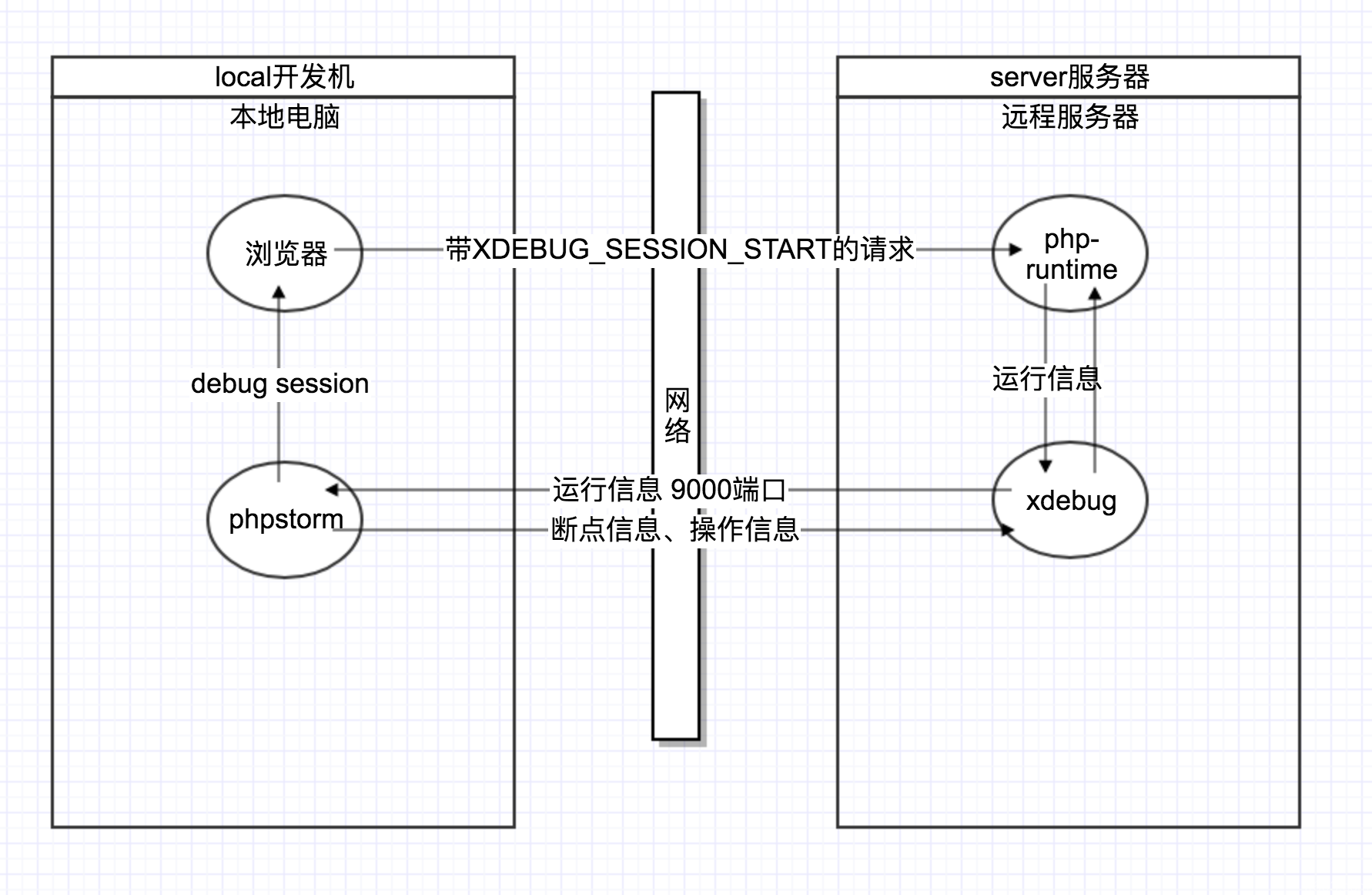 注意事项:现有网络教程中大都忽略了一个问题,远程服务器需要能访问到开发机,因为当服务器接收到到debug标志的请求时需要把信息发送到开发机的phpstorm中。对于有NAT的网络环境中可以通知端口映射或ssh通道的方式保证开发机和服务器之间可以正常通信。