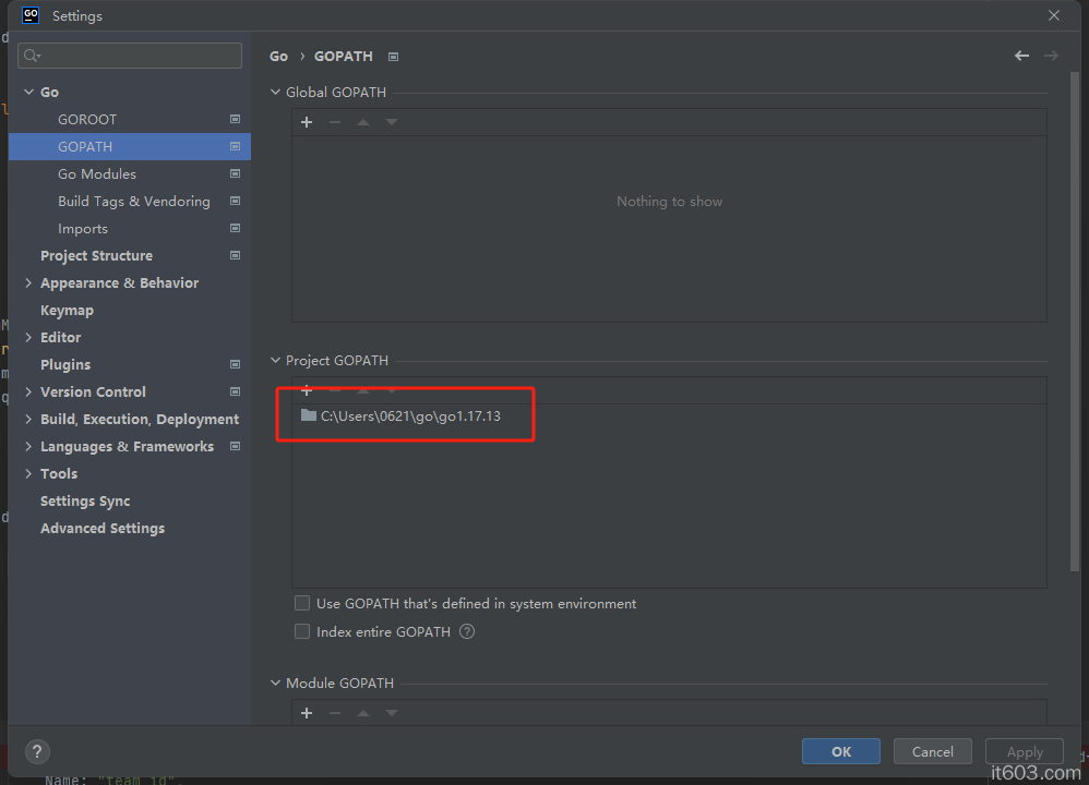 安裝完成後在goland中 help edit custom properties 內添加 dlv.path=C:/Users/0621/go/go1.17.13/bin/dlv.exe