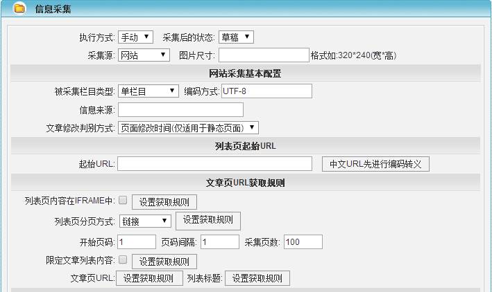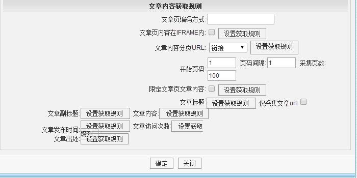 (1)穫得相關的設置蔘數如列錶頁地址以及地址的推導規則,穫得文章鏈接的方式,文章內容,文章標題。瀏覽量等信息的穫取規則。暫時不考慮文章的分頁。需要註意網頁的編碼,圖片的抓取,圖片地址的轉換等。
