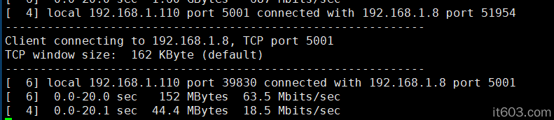 客戶端:iperf -c 192.168.100.55 -t 20 -i 2 -d -m